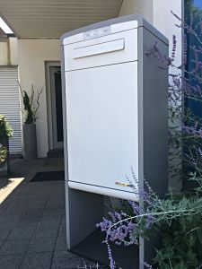 Der vollautomatische Drohnenlandeplatz mit integrierter Be- und Entladeeinheit für Pakete. Insbesondere stark wechselnde Klima- Wetterverhältnisse stellten dabei eine Herausforderung dar.