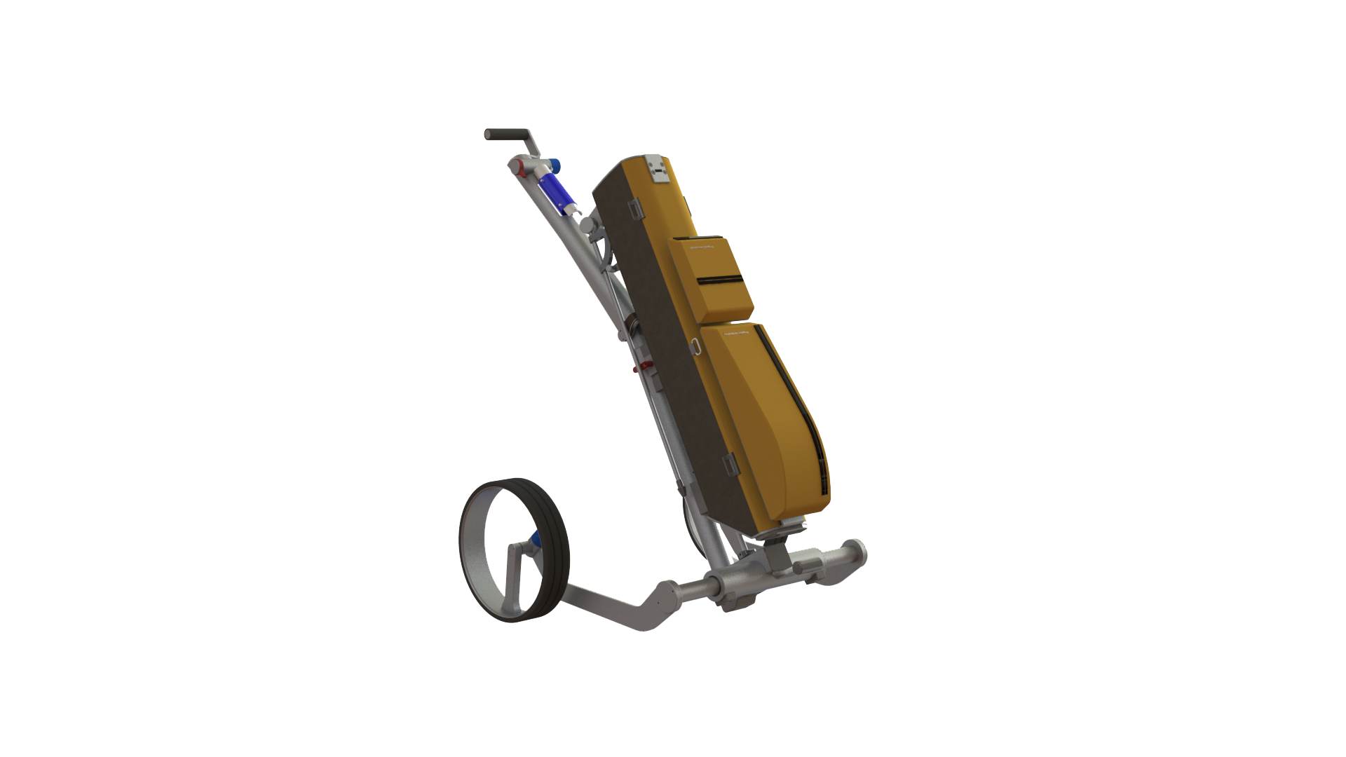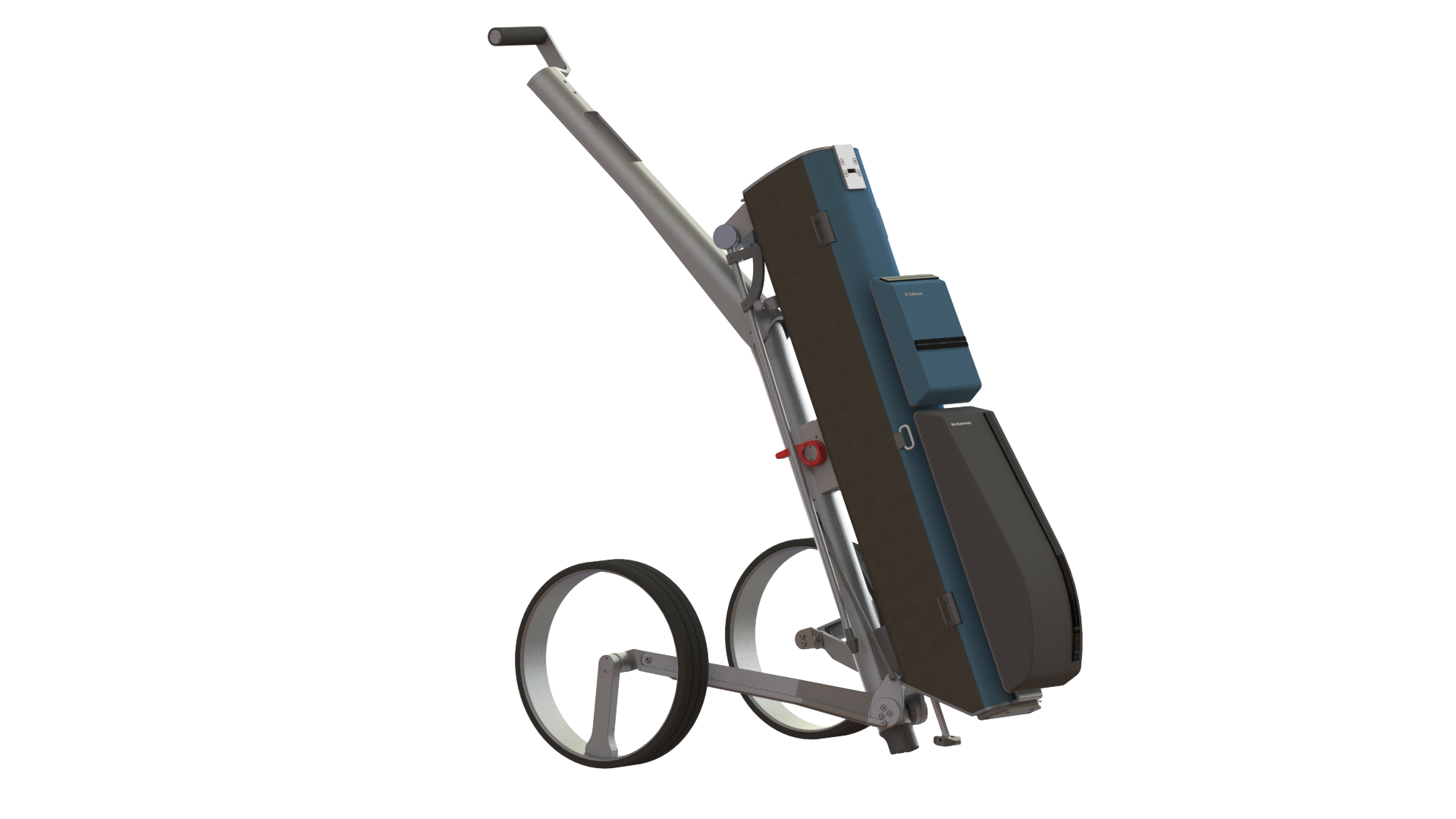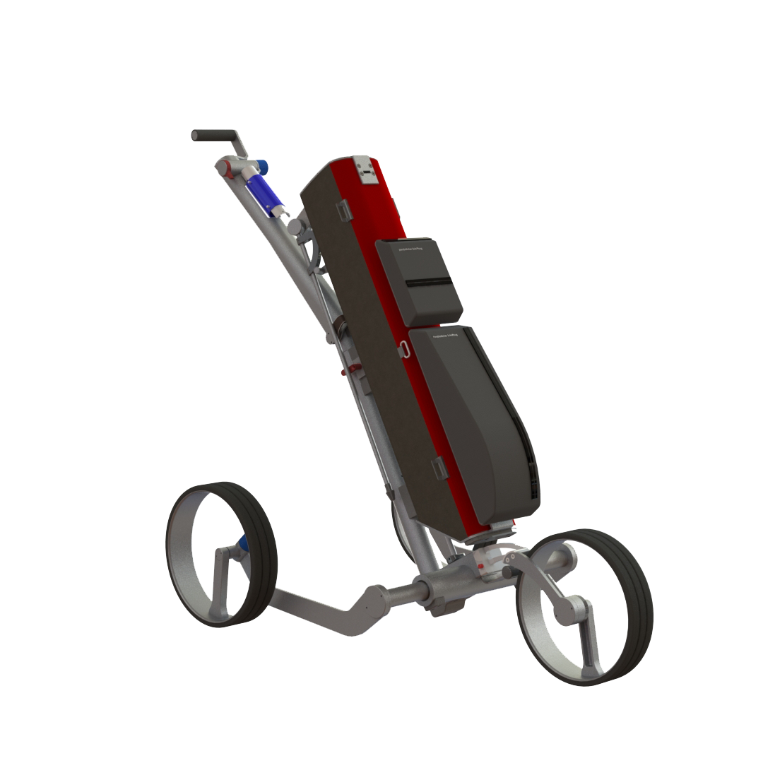 Das Upgrade zum Schiebe-Trolley kann jeder Zeit vorgenommen werden. Das Vorderrad wird mit einem Handgriff in der vorgesehen Halterung befestigt. Es kann jeder Zeit wieder mit einem Handgriff abgenommen werden. Bremse ist integriert!