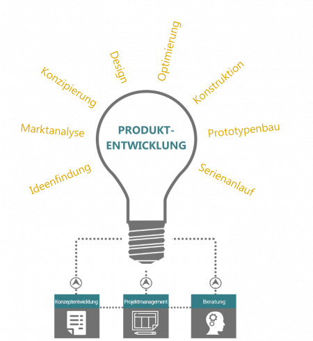 Aus mehr als 30 Jahren Erfahrung, im Bereich Produktentwicklung, können wir von der Planung und Konzipierung über die Entwicklung und Ausarbeitung, bis hin zur Serienreife die Verantwortung für Ihre Produkt-/Projektidee übernehmen. Dabei steht stets Ihre Vision im Vordergrund. Während der Entwicklung Ihres Produktes oder Projektes stehen wir an Ihrer Seite und sorgen dafür, dass neben physikalischen und mechanischen Grundlagen auch die Realisierbarkeit hinsichtlich des Marketingaspekts und der Wirtschaftlichkeit berücksichtigt wird.