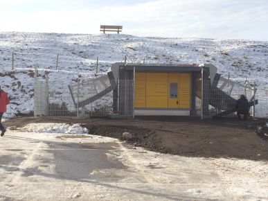 Der vollautomatische Drohnenlandeplatz mit integrierter Be- und Entladeeinheit für Pakete. Insbesondere stark wechselnde Klima- Wetterverhältnisse stellten dabei eine Herausforderung dar.