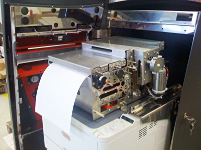Die PVE ent­nimmt aus­ge­druckte Sheets aus dem Drucker und über eine Prä­senter wird das Sheet dann dem User zur Ver­fügung gestellt. Bei Nichtent­nahme, wird das Blatt wieder ein­ge­zogen und in einen Shred­der zugeführt, wo das Blatt dann ver­nichtet wird. Die Um­lenkung des Blat­tes erfolgt über ein spe­zielles Weichen­system.